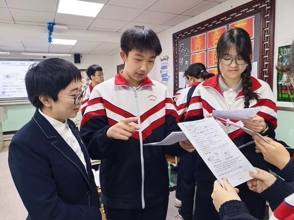 北京市财会学校物理教师王素兰指导学生梳理“活动导学案”。北京市财会学校供图